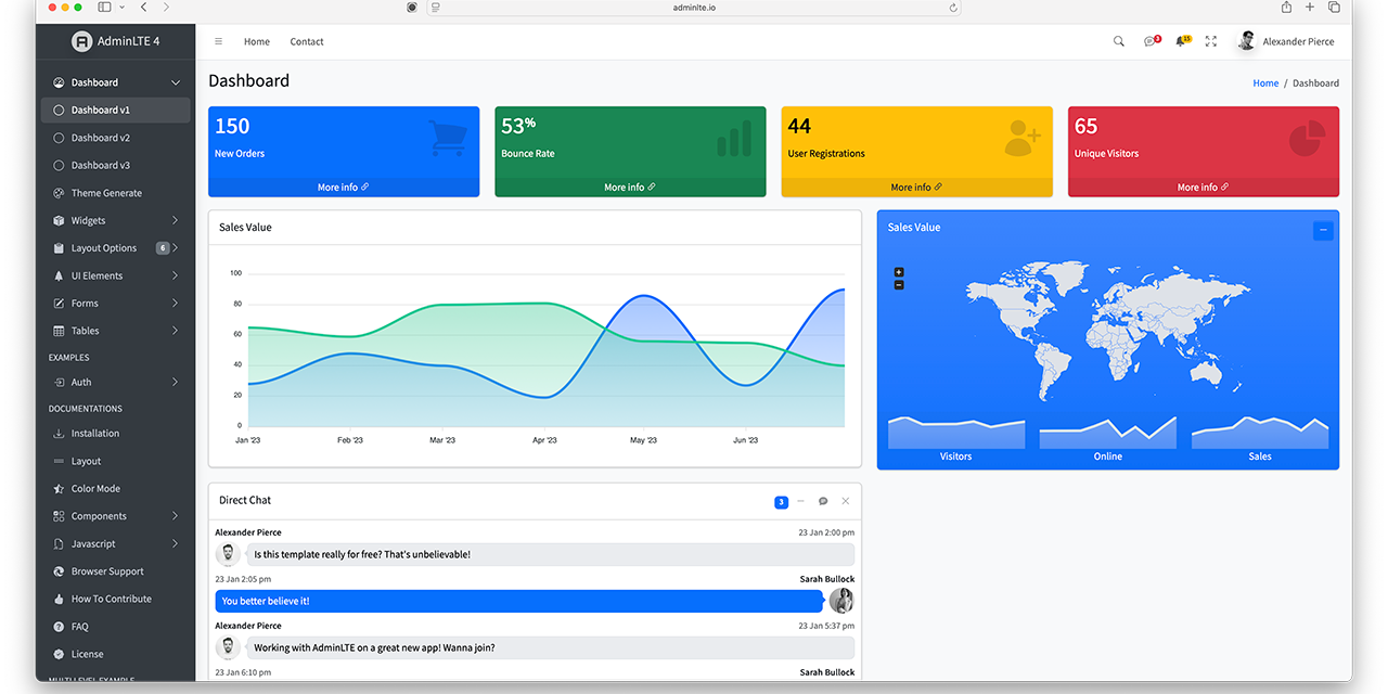 簡単に、AdminLTEの特徴を見てみましょう。
